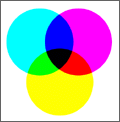 No mix: white (in case we're printing on white paper) Cyan + Magenta: violet (Blue) Cyan + Yellow: green Yellow + Magenta: red All Three: theoretically black, but as this mixture gives the image a dirty tone and has not much contrast, black is printed on the image to greaten the contrast |
