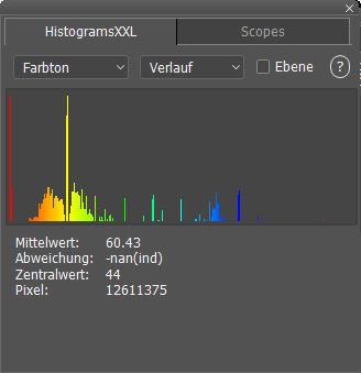 Das HistogramsXXL-Bedienfeld ist dem Histogramm-Bedienfeld von Photoshop (Elements) ähnlich, bietet jedoch neben den 6 Histogrammen von Photoshop (Elements) 11 zusätzliche Histogramme. Zudem zeichnet es Histogramme auf 7 verschiedenen Arten, wohingegen Photoshop (Elements) nur einen einzigen Stil bietet. Außerdem kann man das Bedienfeld vergrössern, um die Histogramme in allen Details zu betrachten.