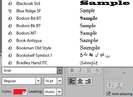 Requirements: A text layer has to be selected in the Layer panel.