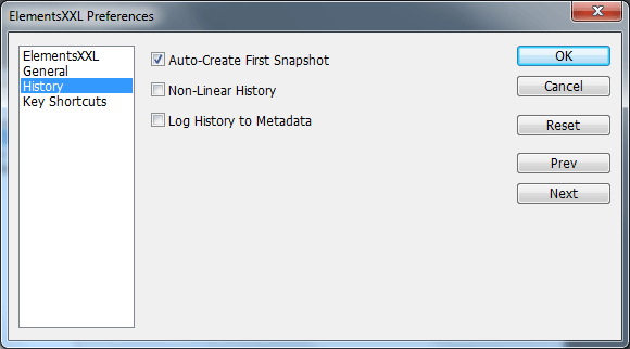 The Auto-Create First Snapshot check box is activated by default and displays a snapshot item in the History panel when an image is opened. Deactivate it to avoid the snapshot item.