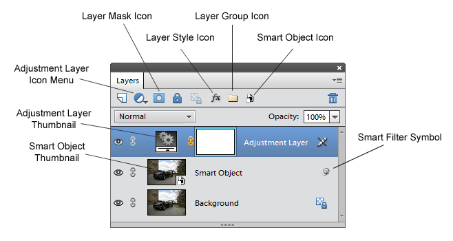 You can click the smart object icon to embed the selected layers into a smart object. If a smart object has one ore more smart filters applied and you click this icon, then the Edit Smart Filters dialog appears.