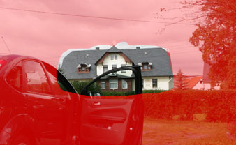 3. Now you will see the whole image (if no selection was created in step 1) or the unselected image areas (if a selection was available) colored red. This indicates that the selection was transformed into a mask.