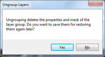 9. On the appearing dialog click the Yes button to restore the name, blend mode, opacity and mask of the old layer group.