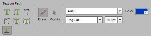 Text on Path tool is displayed on the Tools sub menu, which supplies several new tools that are otherwise not accessible. You can also display it by clicking on the right icon at the bottom of the tool bar.