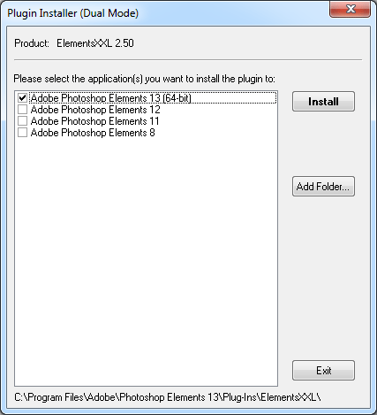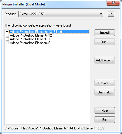 If you install a new version of Photoshop Elements and ElementsXXL is already installed, you do not need to run the full ElementsXXL installation again. You can run Plugin Installer from the Start menu and use it to install ElementsXXL into the newly installed version of Photoshop Elements.