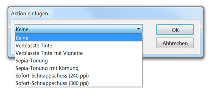 Bitte beachten Sie: Manche Funktionen von Photoshop Elements sind nicht skriptfähig, was bedeutet, daß ihre Einstellungen nicht aufgenommen und abgespielt werden können. Daneben gibt es einige Features nur in Photoshop Elements. Wenn Sie also versuchen eine solche Aktion in in Photoshop auszuführen, werden alternative Effekte oder Einstellungen angewendet. Diese Fakten beziehen sich auf folgende Befehle: Intelligente (Auto-)Korrektur (anpassen), Automatische intelligente Farbtonbearbeitung, (Automatische) Dunstentfernung, Verwacklung (automatisch) reduizieren, Farbkurven anpassen, In Schwarzweiß konvertieren.