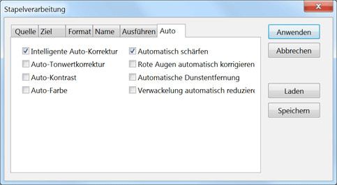 9. Wenn Sie eine automatische Verbesserung auf Ihre Dokumente herbeiführen möchten, aktivieren Sie die passenden Kästchen der Auto-Registerkarte.
