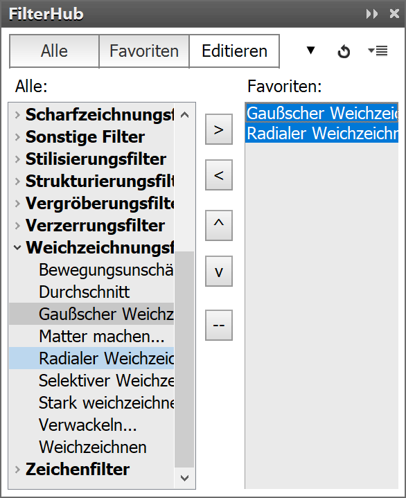 Für weitere Bearbeitungsmöglichkeiten wählen Sie "Ebene > Smart Filter > Smartfilter bearbeiten" oder klicken Sie auf das Smartfilter-Symbol im Ebenen-Bedienfeld