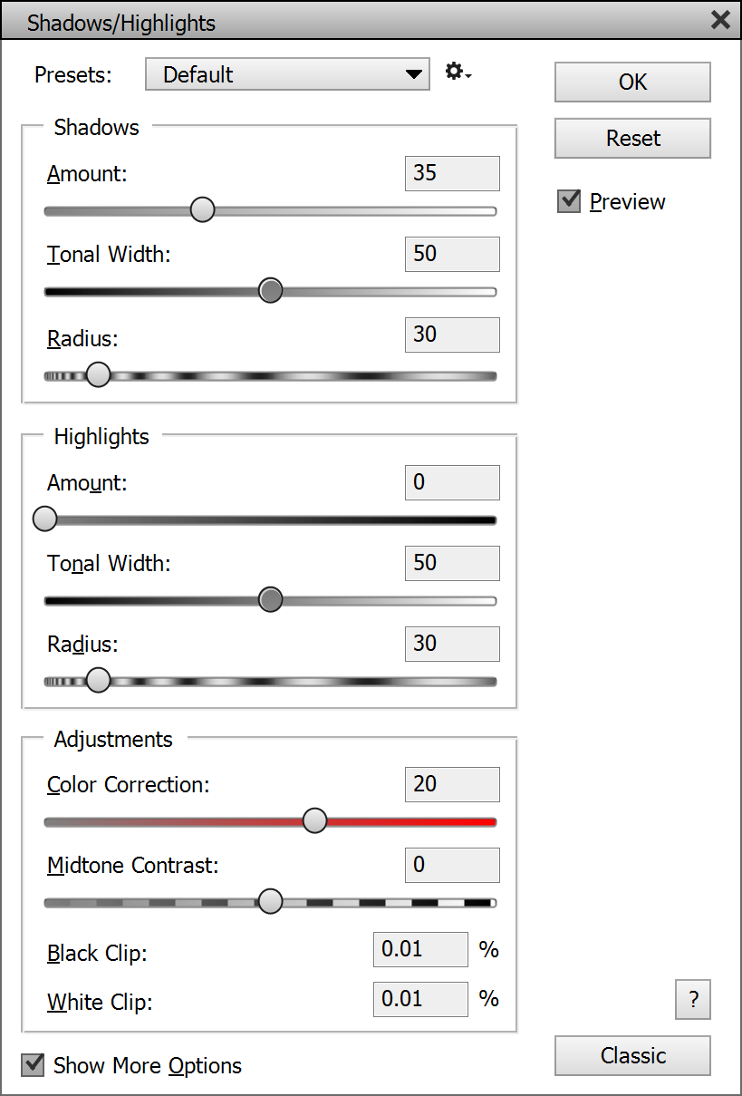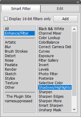 NEW: The Shadows/Highlights filter now offers a presets feature and a smaller dialog.