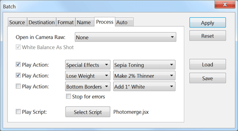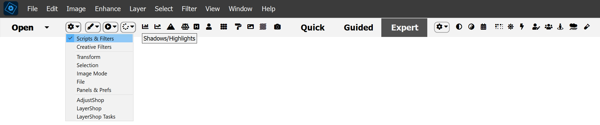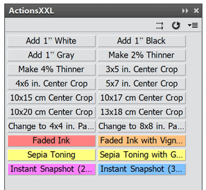 ElementsXXL makes Scripts, Actions and Render drop-down buttons available in Photoshop Elements 8 and higher for quickly accessing scripts, actions and the Render commands.