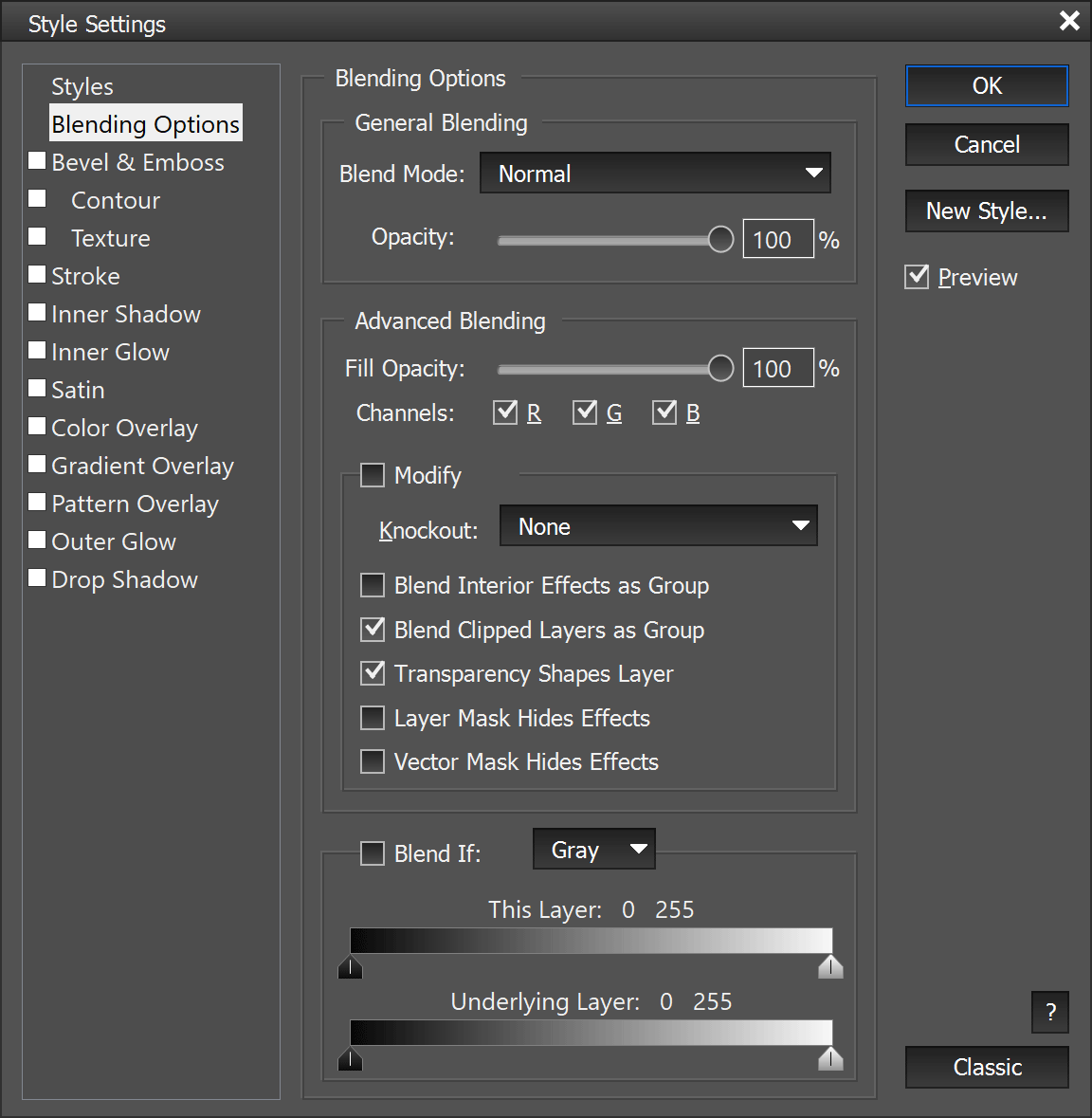 NEW: Style Settings dialog with 150 new features including a gradient editor