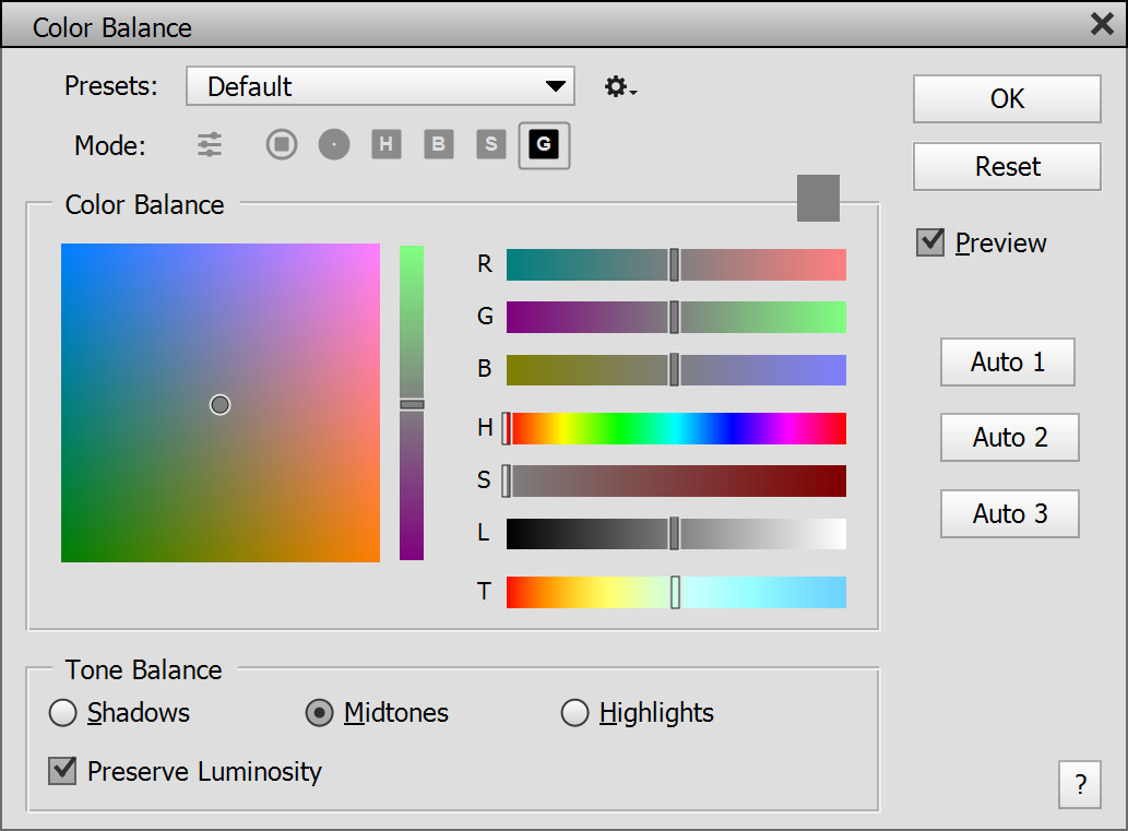 NEW: Color Balance offers three buttons for removing color casts and a new Green Box mode