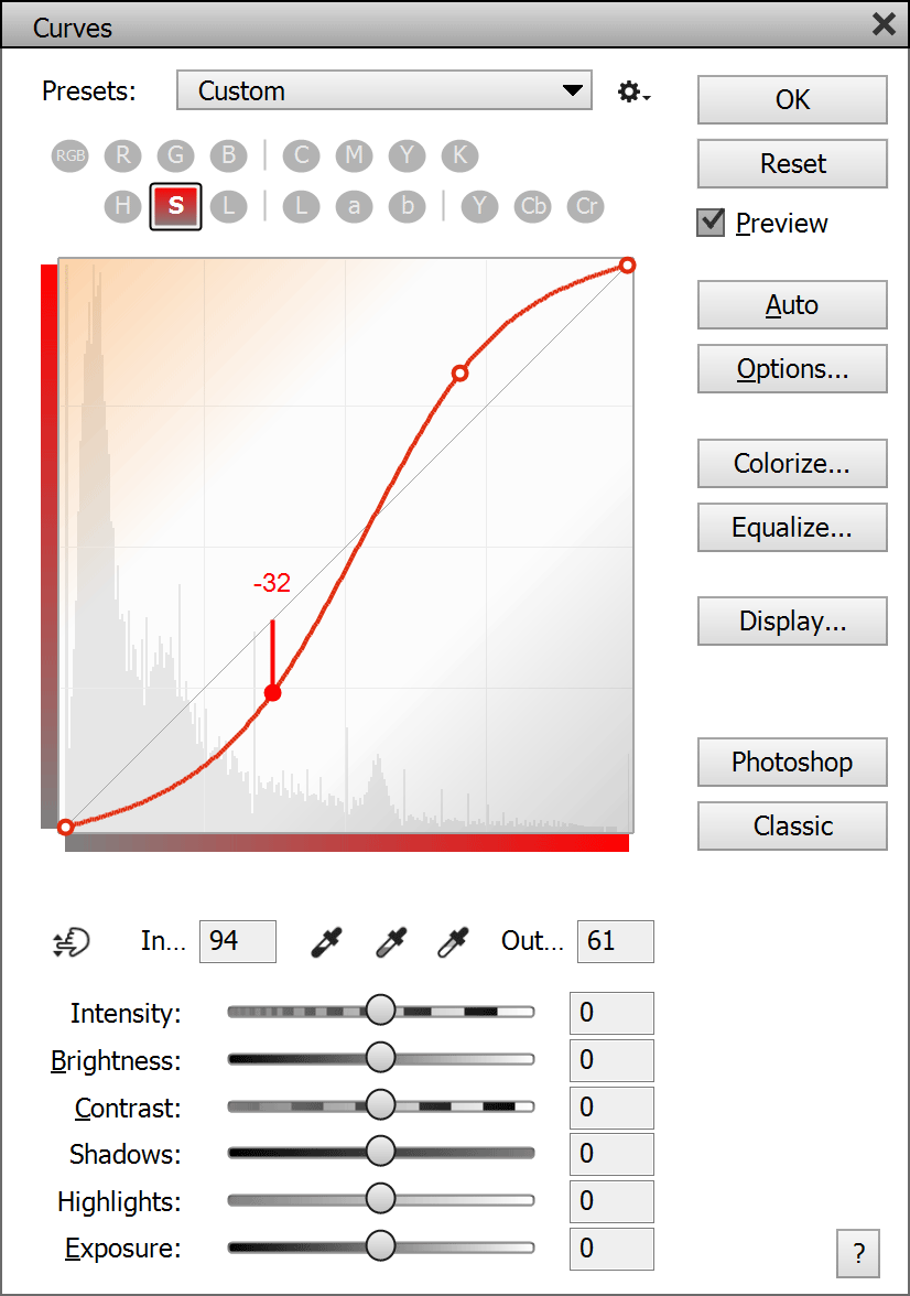NEW: The Curves dialog now offers 6 sliders on the main dialog, new Colorize button and allows moving multiple control point with the Alt key