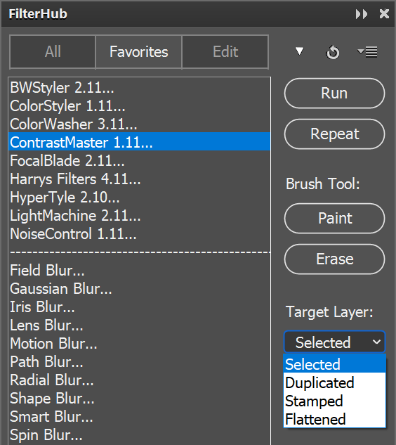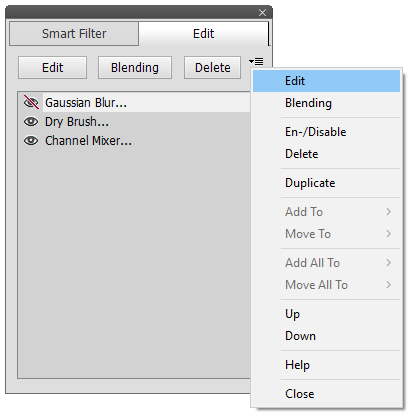 Add up to 112 native and 300 third-party smart filters to your image and edit them with the Smart Filter panel.
