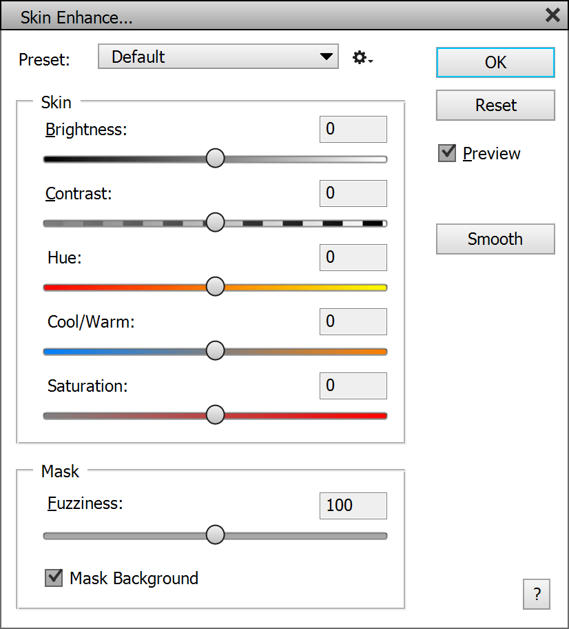 NEW: The Skin Smoother filter makes skin look smooth and at the same time emphasizes skin details. It offers three smoothing methods and 10 presets for all types of ski