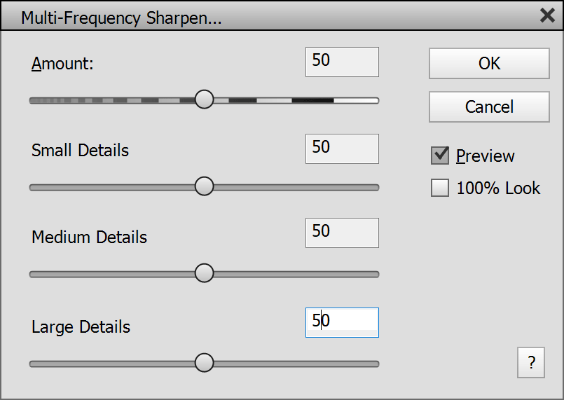 NEW: The Multi-Frequency Sharpen filter sharpens small, medium and large details at the same time. No need for any radius values.
