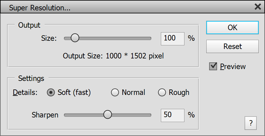 ElementsXXL offers a new Image Size dialog that works like the one in Photoshop CC. It offers two new resampling methods and a preset feature.