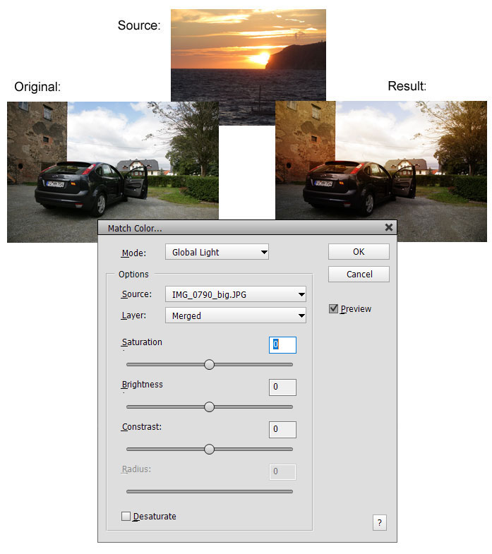The Match Color filter grabs the colors from another image or layer and applies them to current one. It replicates the color mood of special photos as well as apply color to selected areas only. It can now be applied to a single images in ElementsXXL 7.