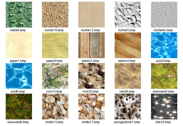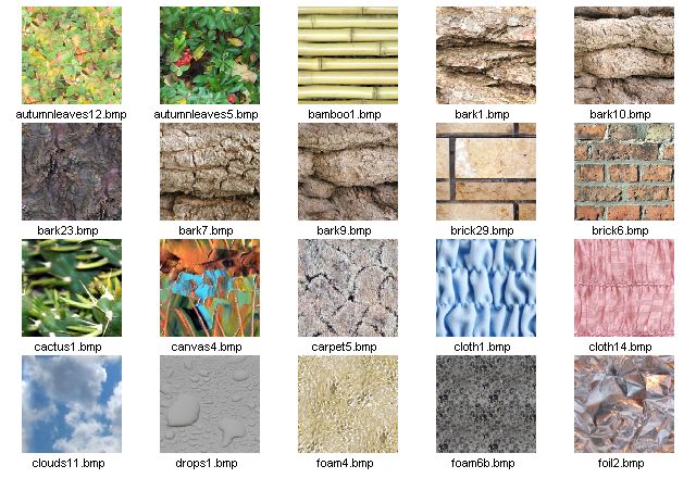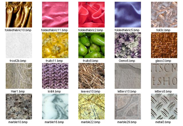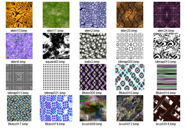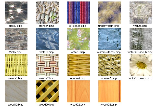 seamless textures at 256 x 256 pixels in JPG format. Here are thumbnails of the 128 seamless textures which are installed with HyperTyle: