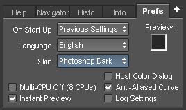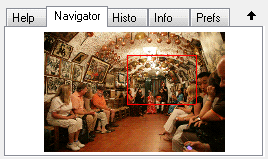 The Navigator tab works just like the Navigator panel in Photoshop. It displays a thumbnail of the image with a red rectangle that indicates which part of the image is displayed in the preview. You can use the Navigator to display a certain image area in the preview by clicking on it in the thumbnail. To quickly scroll around in the preview click somewhere on the thumbnail, hold down the mouse button and move the mouse.