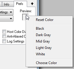 The Preview color box shows the current color of the preview background. By default this is the color of the window background. Click on the color box to display a menu with different options: Reset Color restores the default color and Choose Color displays a color dialog for selecting a certain color. The other menu items apply various gray tones from black to white. The same context menu appears if you right click on the preview background.
