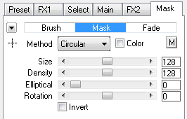 The Circular Mask method creates a circular gradient that is used as a mask. The Size slider determines the size of the circular gradient and the Density slider makes its borders harder or smoother. The Elliptical slider makes the circular gradient elliptical and the Rotation slider rotates it. If the Elliptical slider has a value of zero, the gradient is circular, so using the Rotation slider has no effect. The Invert check box inverts the mask and lets you quickly swap the masked areas.