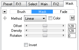 The Linear Mask method creates a linear gradient that is used as a mask. The Offset slider positions the gradient, the Density slider expands or shrinks the gradient and the Rotation slider rotates the gradient by 360 degrees. The Invert check box inverts the mask and lets you quickly swap the masked areas.