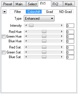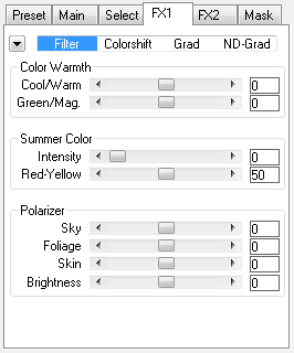 The Colorize tab sheet of Advanced Mode offers effects for colorizing the image, adjusting its contrast and for adding color gradient and neutral gradient effects. It simulates traditional lens filters as well as supplies special color effects.