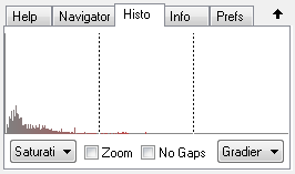The Saturation histogram lets you see if there is a problem with the saturation in the image. For example if there is nothing in the left part, the image may be oversaturated or if there is nothing on the right side, the image is probably undersaturated. However, images with a lot of white and dark areas may appear undersaturated according to the histogram, but as pure white and black have no saturation, the image saturation may still be fine.