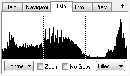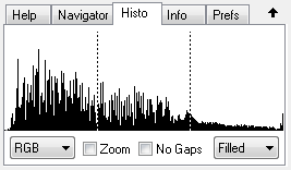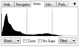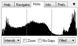 The Zoom check box scales the histogram vertically. This can make the peaks higher and reveal valleys that were not there before. This is especially useful if there is one extremely high peak, which makes all other values appear very small.