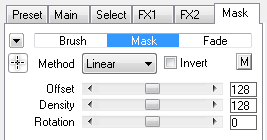 The Linear Mask method creates a linear gradient that is used as a mask. The Offset slider positions the gradient, the Density slider expands or shrinks the gradient and the Rotation slider rotates the gradient by 360 degrees. The Invert check box inverts the mask and lets you quickly swap the masked areas.