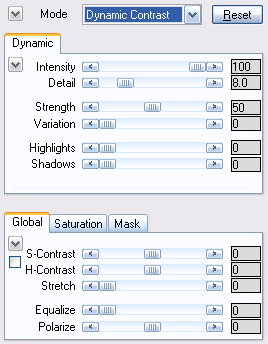 Dynamic Contrast mode lets you apply the dynamic contrast as well as global contrast effects. For more details, please read the Dynamic Tab Sheet, Global Tab Sheet, Saturation Tab Sheet and Mask Tab Sheet pages.