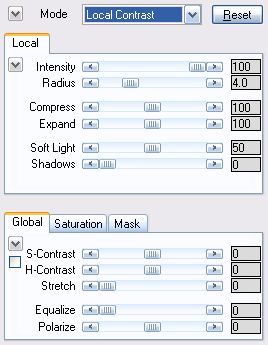 Local Contrast mode lets you apply the local contrast as well as global contrast effects. For more details, please read the Local Tab Sheet, Global Tab Sheet, Saturation Tab Sheet and Mask Tab Sheet pages.