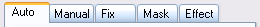 The large tab control with tab sheets like Auto, Manual, Fix, Mask and Effect contains the controls for adjusting the effect of FocalBlade. See the following pages for more explanations: Auto: One Pass, Auto: Two/Three Passes, Manual, Fix, Mask, Effects.