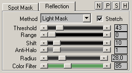 The Method combo box offers four choices for creating a shadows/highlight mask or reflection mask. The first three options are simpler methods whereas the fourth "Light Mask" method is a combination of the previous three methods. When using the Auto Mask tab sheet the Method feature is automatically switched to"Light Mask".