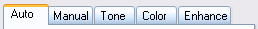 The large tab control with tab sheets like Auto, Manual, Fix, Mask and Effect contains the controls for adjusting the effect of NoiseControl. See the following pages for more explanations: Auto Tab, Manual Tab , Tone Tab, Color Tab and Enhance Tab.