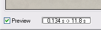 A deactivated Preview check box does not render the effect and therefore does not display any effect in the preview. This way you can see before/after versions of the image and adjust a number of controls without provoking a repeated rendering of the effect. When the effect is rendered, you will see a bar running from left to right in the progress bar control. After the rendering is completed and the preview updated, you will see the time that was needed for rendering as well as an approximation of the time that is needed to render the full image.