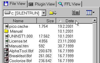 By default the Details File View mode is displayed. This mode corresponds to the Details View of the Internet Explorer. If you don't like this mode, you can also switch to a different mode.