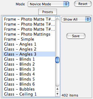 For more information about the Presets tab sheet see the Novice mode above.