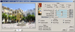 Mosaic Toolkit Version 2.55 applies mosaic effects to photos and other images. It provides 32 mosaic styles, e.g. Squares, Rings, Balls, Square Rings, Stars, Gears, Flowers, Diamonds, Triangles, Spirals, Bullet holes, Octagons, All, Hexagons, Pyramids, Source image, Gaudi Source Image, and Tiling of an external BMP File. You can vary cell size and contrast, color tweak cells, ball glow and brightness and blend the effect with the original photo. There are 17 optional effects including: gradient, radial gradient, color inversion, poster, chrome, and a row shift brickwork effects. You can now import an external BMP file, tile it, select a transparent color, and blend it with the source file.