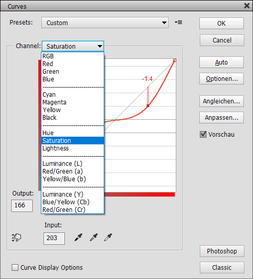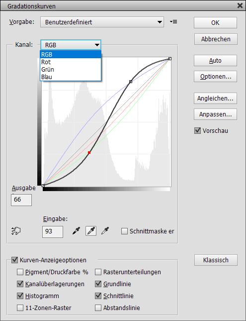 Die Schaltfläche Klassisch lässt den eignen Gradationskurven-Dialog vom Photoshop (Elements) erscheinen.