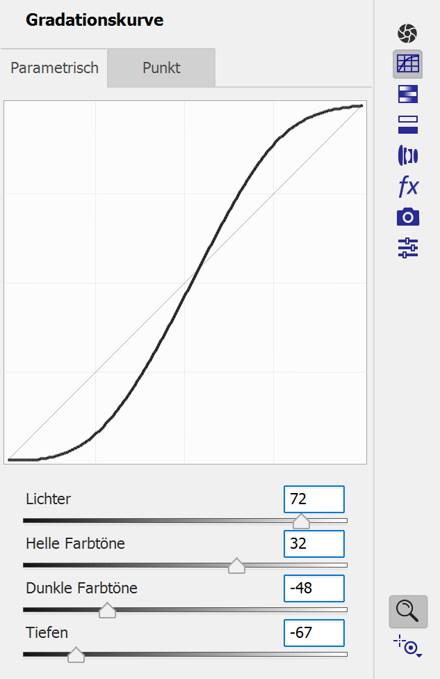 Gradationskurven ist der Name der zweiten Registerkarte bzw. des zweiten Icons.