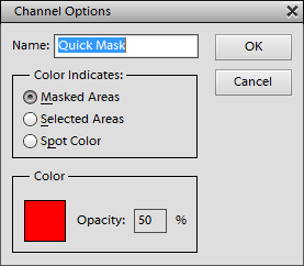 After the Edit in Quick Mask Mode menu item was activated, you can adjust the appearance of the quick mask.