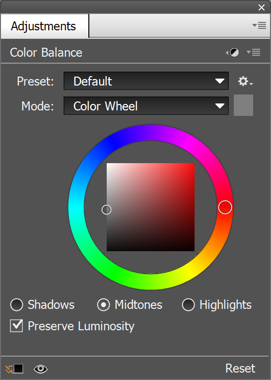 To run the appropriate adjustment layer, click its icon. Alternatively use the menu icon in the top right corner and select an adjustment layer from the appearing menu.