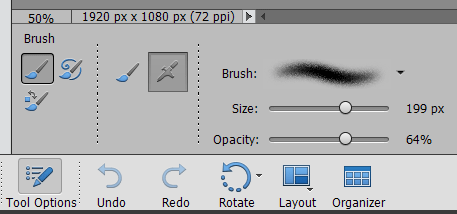 Please note: ElementsXXL cannot access all brush settings at all times due to limitations of the plugin interface of Photoshop Elements. So during a Photoshop Elements session either only use the Brush/Tablet Settings dialogs of the Tool Options window or only use ElementsXXL's Brush panel, because adjustments in the Brush/Tablet Settings dialogs will be undone by a new adjustment in the Brush panel.