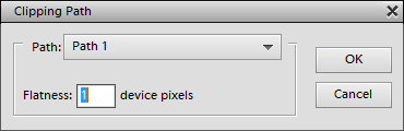 The Clipping Path dialog lets you select the path that will be used as a clipping path and define the flatness (meaning softness) of the path curves.