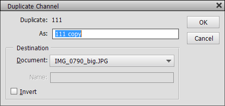 By default the current document is selected in the Document combo box. If you choose the New item in this combo box, a new document will be created and the channel copied to it. If another document with the same width and height as the current document exists, this document is also selectable from the combo box. By choosing it you can copy the channel to the other document.