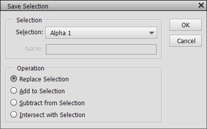 To change an existing channel with the selection choose the channel name from the Selection combo box. Now the three disabled radio buttons at the bottom become enabled and the New Selection radio button is renamed to Replace Selection. As you have guessed, the Replace Selection option simply replaces the existing channel with the selection. The Add to Selection option extends the selected areas of the channel with the selection, the Subtract from Selection option contracts the existing channel and the Intersect with Selection option only keeps the intersection areas of the channel and selection.