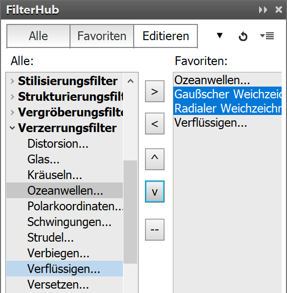 Für weitere Bearbeitungsmöglichkeiten wählen Sie "Ebene > Smart Filter > Smartfilter bearbeiten" oder klicken Sie auf das Smartfilter-Symbol im Ebenen-Bedienfeld