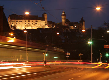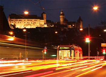 Das linke Bild ist eines von drei Fotos mit Lichtspur, die mit einem Stativ aufgenommen wurden. Das rechte Ergebnis entstand durch automatisches Ausrichten sowie Freistellen aller drei Fotos, wobei die Funktion "Ebenen belichten" von LayerShop mit der Option "Lichtspur" angewendet wurde.